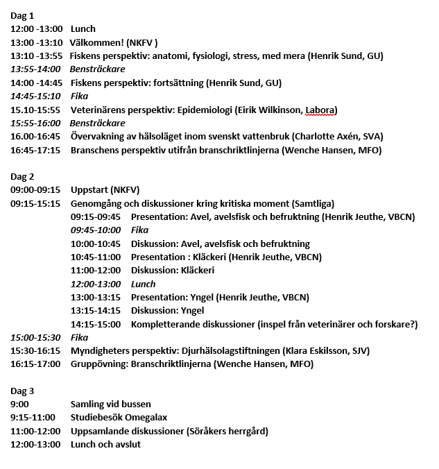 Målgrupper: Fiskodlare, myndighetspersoner, samt andra vattenbruksintresserade i mån av plats.