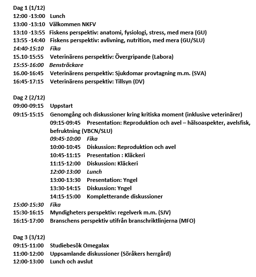 Målgrupper: Fiskodlare, myndighetspersoner, samt andra vattenbruksintresserade i mån av plats.